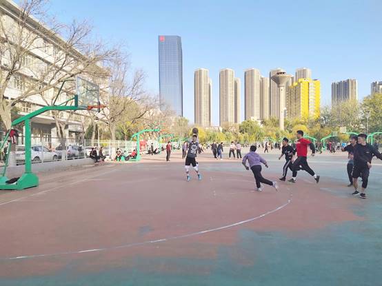 山西财经税务专科学校与我校的友谊赛正式打响。裁判把球高高抛起,双方争球的队员向上一跃,激烈的篮球争夺赛开始了。双方队员上场抢球,大家都为此捏一把汗。强手如林的赛场上,队员们并无丝毫惧怕之感,而是不甘示弱,奋力“拼杀”。