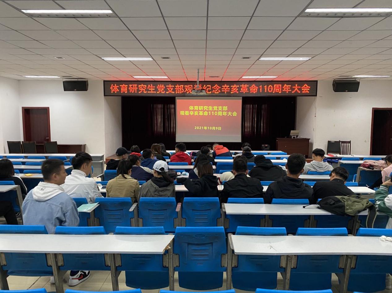 为弘扬辛亥革命精神,凝聚爱国力量,培养大学生的爱国情怀,树立正确的人生观与价值观,培育合格的新时代中国特色社会主义接班人,2021年10月9日,bevitor伟德国际1946体育学院研究生党支部于五层会议室组织全体党员观看“纪念辛亥革命110周年”现场直播。