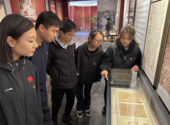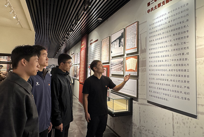 在中共太原支部旧址,运动训练专业李雨曦同学说:“站在这片点燃山西革命火种的土地上,看着彭真同志参与创建支部、领导斗争的史料,我内心特别震撼。这里的每一件文物都在诉说先辈们以青春赴使命的故事,让我真切懂得中共太原支部作为‘革命灯塔’的重量。特别是在支部旧址重温入党誓词,仿佛与当年的革命青年进行了一场跨越时空的对话,更加坚定了我的理想信念。 作为运动训练专业的学生,今后我会把先辈们不怕吃苦、勇担使命的精神融入训练,在赛场和人生路上都传承好这份红色担当。”