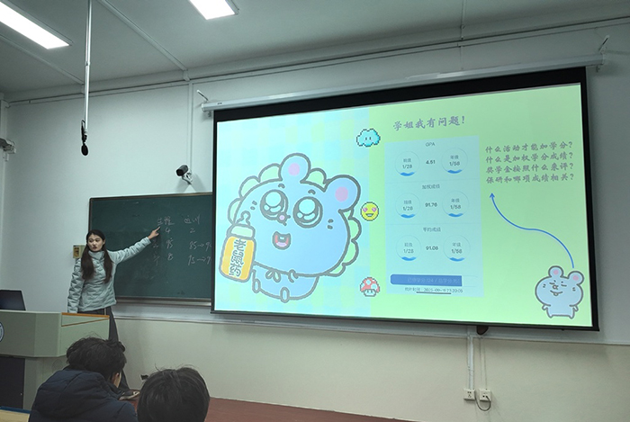 八位学长学姐完成经验分享后,10分钟开展互动答疑,参会学生围绕“专业课与理论课平衡”“大创零基础入门”“保研时间节点把控”等实际问题积极提问,学长学姐结合自身经历逐一耐心解答,现场秩序井然、交流氛围热烈。体育2501班学生黄凌妤说:本次分享内容紧密贴合了我们学习生活与发展的需求,尤其是大创实战经验与四六级备考方法具有极强的实操性,为以后不同发展方向的学生提供了清晰指引。