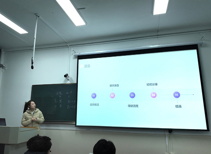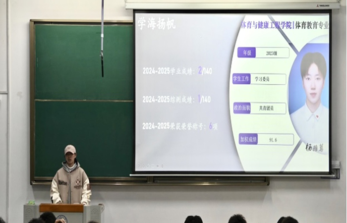 在升学规划指导环节,明向校区保送东北大学体育2201班张扬天以“提前布局、稳步推进”为主题,从时间管理、专业学习、课外实践、科研锻炼四个维度系统拆解体育专业保研路径,建议学生自大一阶段即运用“目标倒推法”平衡各项任务,通过参与专业实践积累经历,从院级科研立项入门逐步培养科研能力,为保研奠定坚实基础。虎峪校区报送湖南大学的运训2201班白卓群则聚焦体育专业保研政策细节,详细解读“院校选择技巧”“面试常见问题及应答思路”,明确提前准备个人陈述、科研成果证明等材料的重要性,助力学生高效推进保研准备工作,少走弯路。