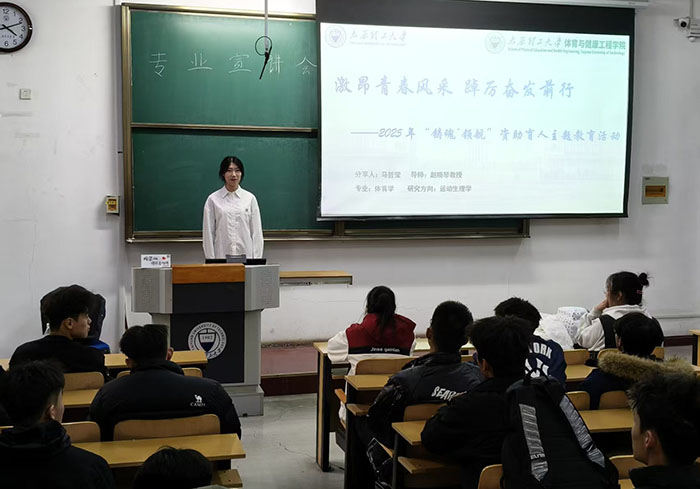 11月23日下午,明向校区行知楼B118教室同样气氛热烈,150名学生现场聆听了优秀研究生马哲莹的成长分享。马哲莹来自体育学专业,研究方向为运动生理学,她在学业科研与体育赛场均取得亮眼成绩。宣讲中,她动情地说:“国家奖助政策的温暖让我能全身心投入训练与科研,白天在操场打磨技术,夜晚在实验室钻研运动训练理论,这份支持是我前行的底气。”她分享了自己斩获多项赛事奖项、发表多篇学术论文的奋斗历程,诠释了体育人“敢拼敢闯、坚持不懈”的精神内核。互动环节,马哲莹针对同学们提出的各类问题逐一解答,实用的经验分享让在场学生受益匪浅。宣讲尾声,她鼓励大家:“国家资助政策为我们搭建了成长的阶梯,唯有以奋斗回应关怀,方能不负韶华。希望大家在追逐梦想的道路上,既要勇往直前,也要懂得感恩,用实际行动诠释新时代体育学子的担当。”