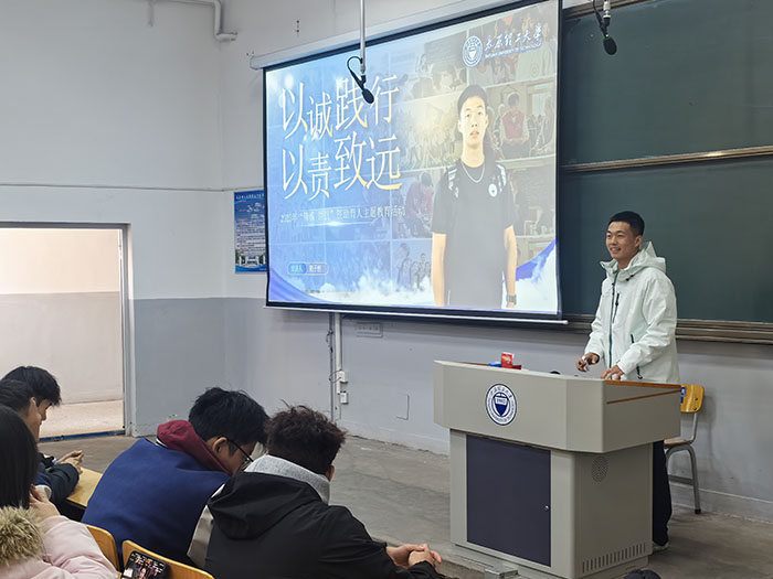 为深入落实国家资助育人政策,推进“三全育人”工作走深走实,提高学生诚信意识和感恩意识,2025年11月22日-23日,伟德BV1946在明向校区、虎峪校区开展2025年‘铸魂 领航’资助育人主题教育优秀学子宣讲活动,学院研究生国家奖学金获得者马哲莹、本科生国家奖学金获得者张思越、国家励志奖学金获得者周一恒宣讲个人成长经历,共计300余名学生共同聆听受国家资助政策帮扶、在学业科研与体育赛场双线出彩的优秀学子分享成长故事,感受资助温度,汲取奋进力量。
