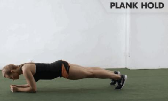 一直线,核心肌肉收紧,别让身体掉下去了。夹紧臀部,有