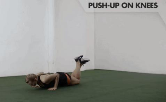 俯卧撑向下:将身体接近地面。(动作过程中保持躯干稳定,不要出现塌腰驼背的状况)