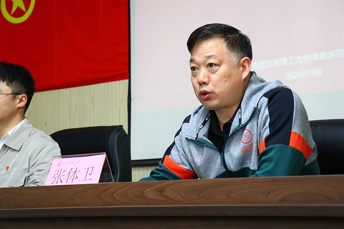 学院党委副书记张体卫代表学院党委致开幕词,充分肯定了体育学院团委近年来取得的成就,强调青年要坚定理想信念,强化使命担当;锤炼品德修养,树立时代新风;勤奋学习实践,助力创新发展。他表示在这筑梦圆梦的新时代,体育学院青年要同心同行,紧跟党的步伐,助力学校“双一流”发展,助力中华民族伟大复兴,共同谱写体育学院青年新的奋进篇章。