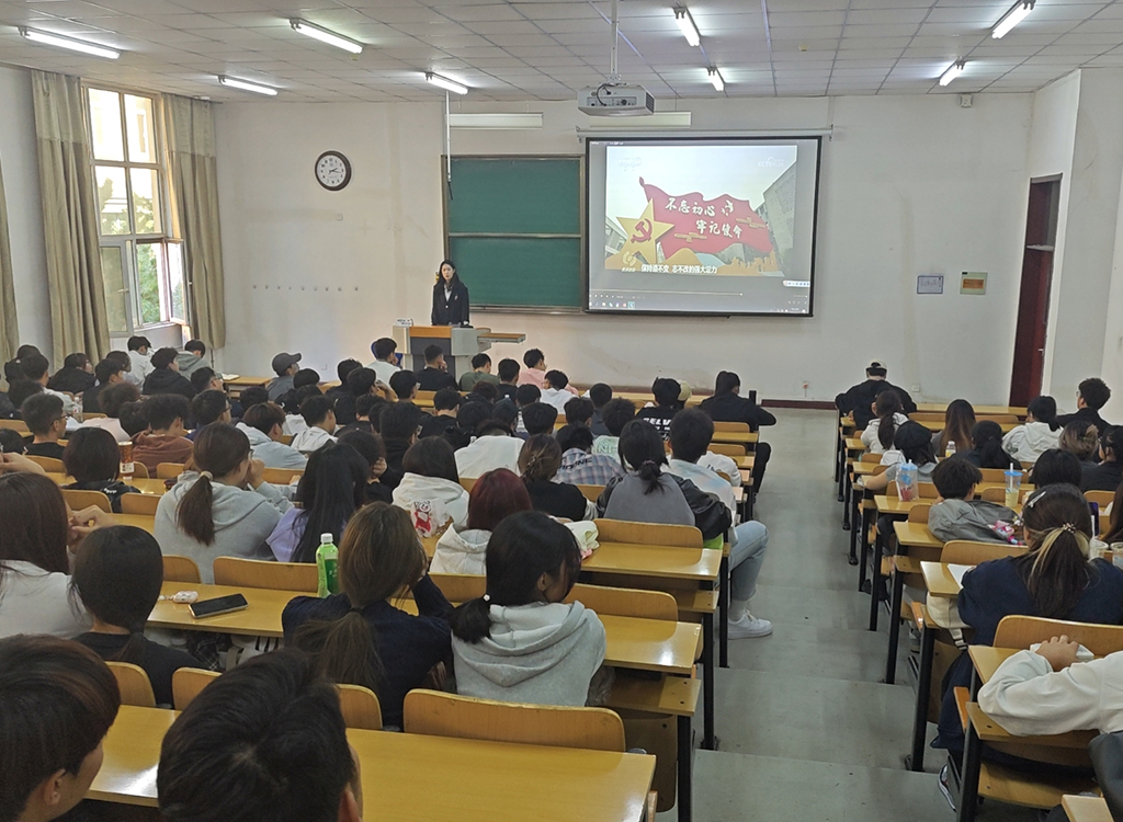 校团委校园文化部副部长许多多以《为中国式现代化挺膺担当》为题,以详实的案例、深入浅出地讲解了什么是中国式现代化、工业化与现代化有什么异同点,通过电影《摩登时代》举例,指出中国式现代化的优越性,论述了中国式现代化的五个特征,激励同学们踔厉奋发,以坚定的步伐在青春的征途上勇毅前行。