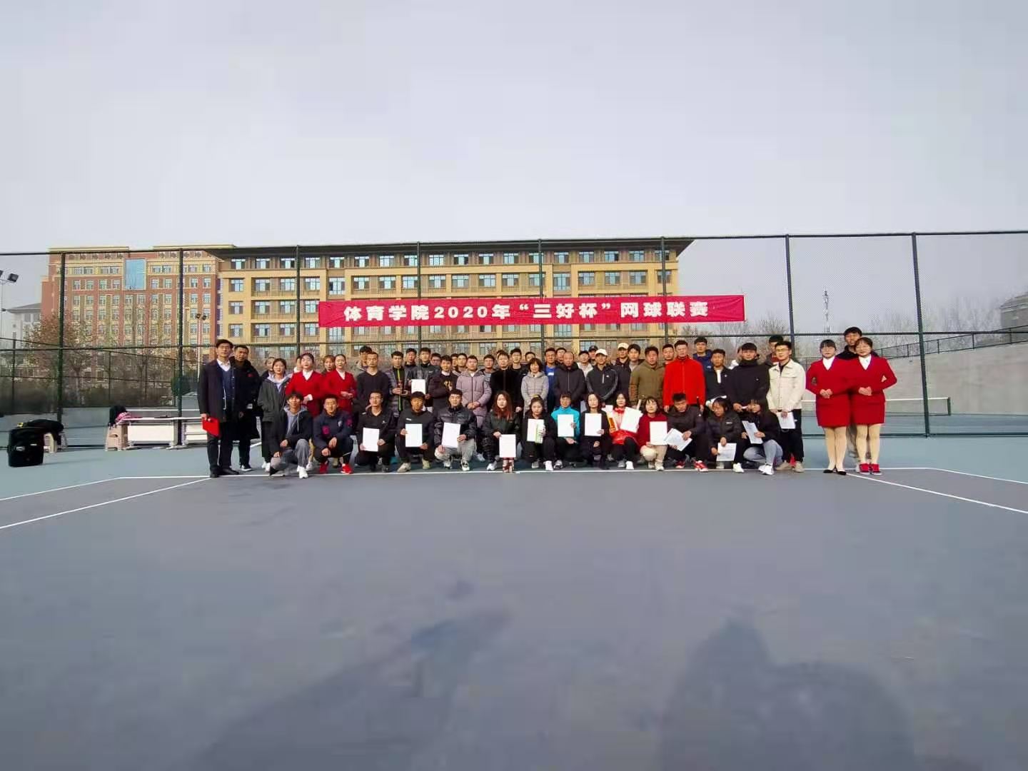 为全面贯彻《关于全面加强和改进新时代学校体育工作的意见》,落实“教会、勤练、常赛”的精神,同时丰富学生课余生活,加强学生身体素质,提高学生团队协作能力和群众凝聚力,展现大学生积极向上的风貌,体育学院于11月22日至30日举办了2020年“三好杯”班级网球赛(研究生组、本科组)。