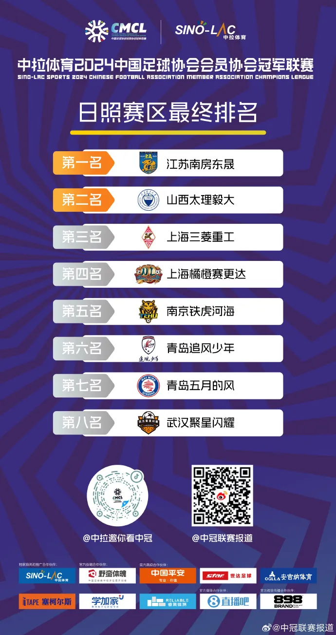 中国足球协会会员协会冠军联赛(简称中冠联赛)是中国第四级全国赛事,由中国足协举办,本赛季共计8个赛区,71支球队报名参赛,在此次赛事中我们取得了日照赛区第二名并出线,下一阶段迎来中冠联赛全国总决赛,全国总决赛将会以主客场的形式来进行,我们拭目以待!