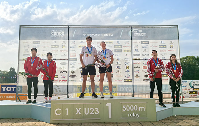 7月19日,在保加利亚普罗夫迪夫举行的2024国际皮划艇联合会青少年及U23皮划艇静水世界锦标赛中,我校学生朱嘉栋(左一)与队友合力在静水单人划艇男女混合接力5公里比赛中顽强拼搏,为中国代表团夺得一枚宝贵的银牌。