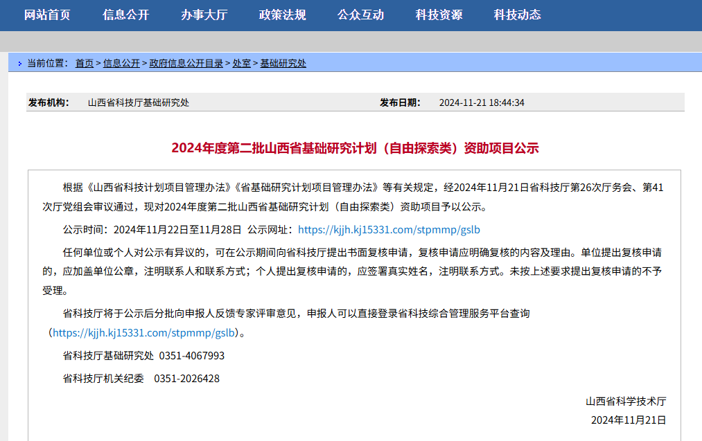 喜报:我院教师张力文获批2024年度第二批山西省基础研究计划(自由探索类)资助项目