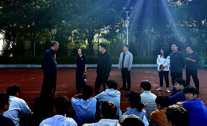 上午8时,学院领导一同走进专业理论课课堂和术科教学场地,全面了解教学开展情况。在专业课理论课堂,院领导认真听取教师授课内容,关注学生学习状态;在排球场、足球场、武术房等术科课堂,院领导看望正在训练的学生和教师,对他们的刻苦努力表示充分肯定,并鼓励大家扎实掌握专业技能,不断提升综合素养。此外,学院领导还特别走访了公共体育课教学现场,细致询问场地安排、器材使用等情况,关切是否存在实际困难。张美珍院长表示,学院将持续优化教学保障条件,全力支持师生开展体育教学与训练活动,为提升公共体育教学质量提供坚实保障。
