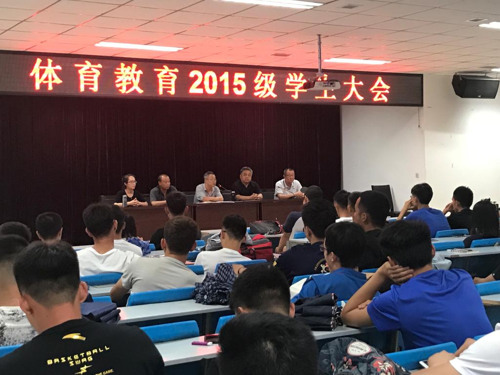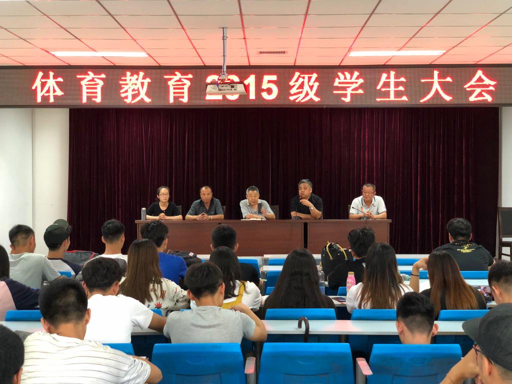 7月9日下午16时,我院召开体育教育15级学生大会,我院党委书记汤巨渊、院长史冬博、副院长田忠新、张美珍出席,党委副书记张忠璞主持本次大会,15级辅导员何晓雁老师及2015级全体学生参会。