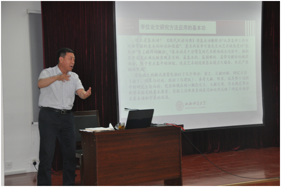 6月4日,我院举办的《体育人说》系列讲座迎来了第三讲《学位论文研究方法应用的基本功》,山西师范大学校党委委员、体育学院院长、体育学硕士一级学科学位点负责人郑旗教授主讲。