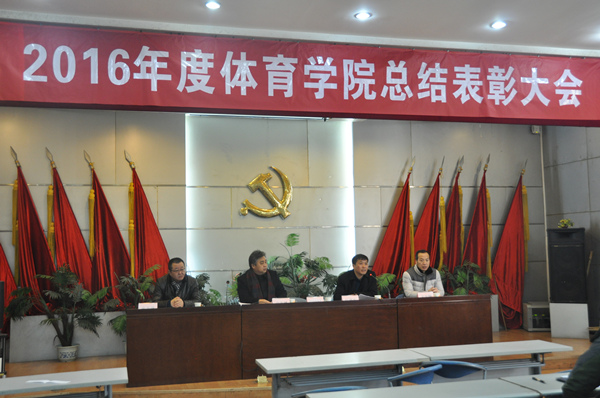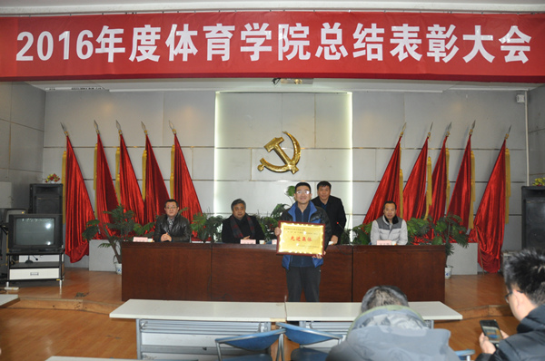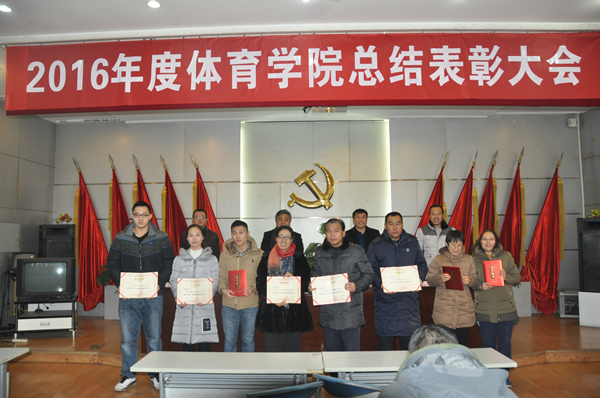 学院行政工作负责人、副院长史冬博作了2016年度学院工作总结和2017年工作计划。报告全面总结过去一年学院在党政工作、教学科研、学生工作、运动竞赛、工会工作以及安全稳定等各项工作中取得的成绩,查找出了存在的问题和不足,明确了2017年学院的工作思路和重点工作,为大家指明新的一年奋斗的方向。院党委书记任晋军从党建、竞训、学科、团学等方面总结了2016年我院取得的十大标志成果,对付出辛勤劳动的各位教职工表示感谢。随后,院党委副书记张忠璞宣读了学院党政联席会通过的《关于表彰2016年度先进集体和先进个人的决定》,共有3个先进集体和44名先进个人受到表彰,覆盖了党政、团学、教学、科研、竞训等方面的优秀代表。学院号召全体教职员工要以先进集体和先进个人为榜样,爱岗敬业,勤奋工作,为建设特色鲜明、省内一流的体育学院添砖加瓦、建功立业,在学校冲击“双一流”的进程中做出体育学院应有的更大的贡献!