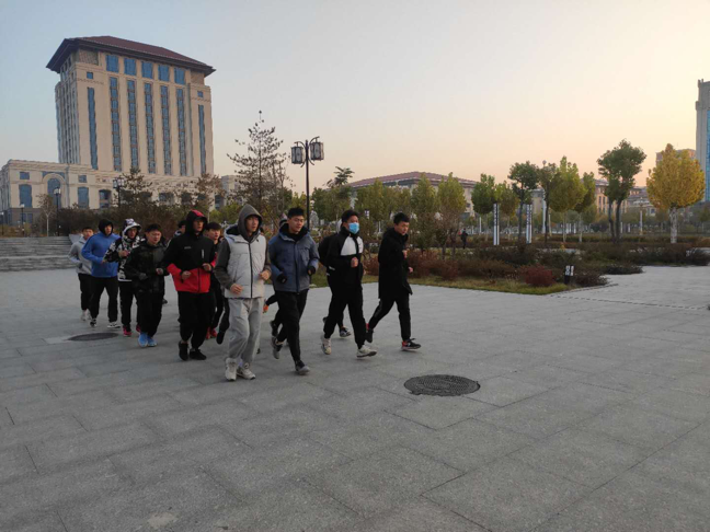 每周一至周五早上6:50,体育学院学生在宿舍楼下集合,以青春洋溢的早操开启自己崭新的一天。清晨凛冽的寒风,将每一个人的睡意打散。体院学生以班级为单位列队,迈着整齐的步伐,喊着洪亮的口号“体魄康健、人格完善、学识广博、理想远大”在校内跑步。围绕校内跑一圈后大家开始习练武术和做广播操。清脆的哨声和响亮的口号声久久回荡在清晨的bevitor伟德国际1946,展现了我院学子积极向上,青春昂扬的风采。
