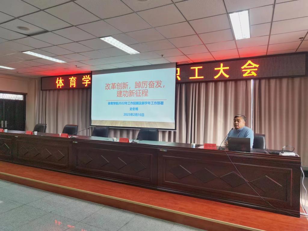 2月16日,体育学院在迎西校区逸夫楼会议室召开新学期全体教职工大会,学院党政领导班子及全体教职工参会。会议由田忠新副院长主持。