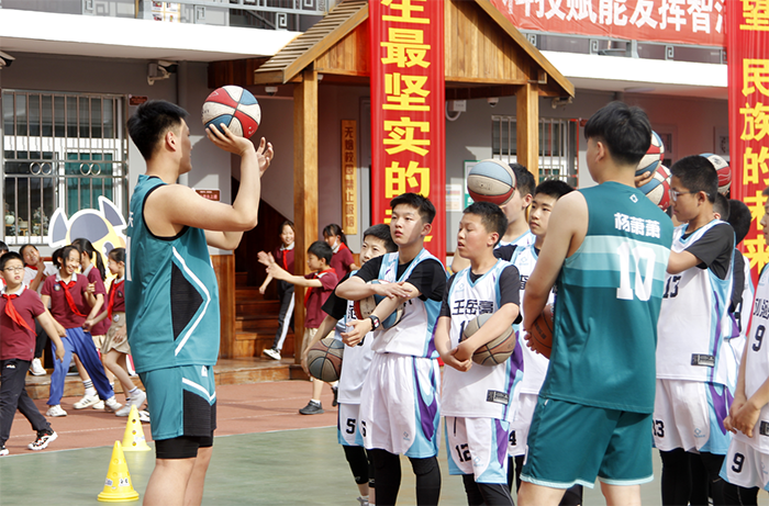 捐赠仪式过后,高水平篮球队队员进行了篮球表演及教学活动。活动开始前,他们认真分析了小学生们的年龄特点和篮球水平,制定了适合小学生们的篮球教学计划,并进行了反复的练习和调整。在活动现场,我院篮球队队员通过简单、易懂的语言,向小学生们传授了篮球基本技能和战术,让小学生们在轻松愉悦的氛围中学习篮球知识,提高篮球水平。