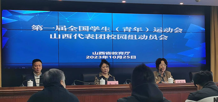 2023年10月25日,第一届全国学生(青年)运动会山西代表团校园组在省教育厅2010会议室举行出征动员会。我校共有34名学生和7名领队、教练员和工作人员共计41人入选山西代表赛团,将参加田径和男子足球校园组的比赛,并力争取得优异成绩。