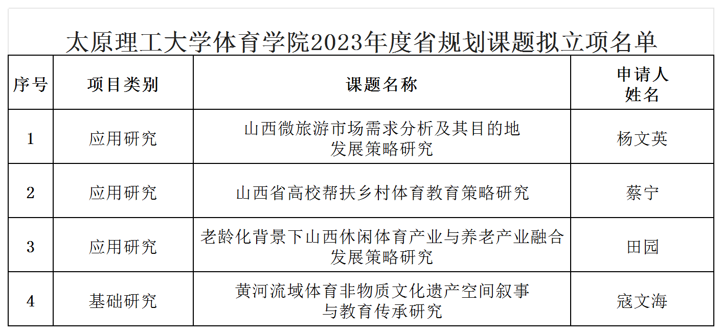 喜报:体育学院获批4项山西省哲学社会科学规划项目