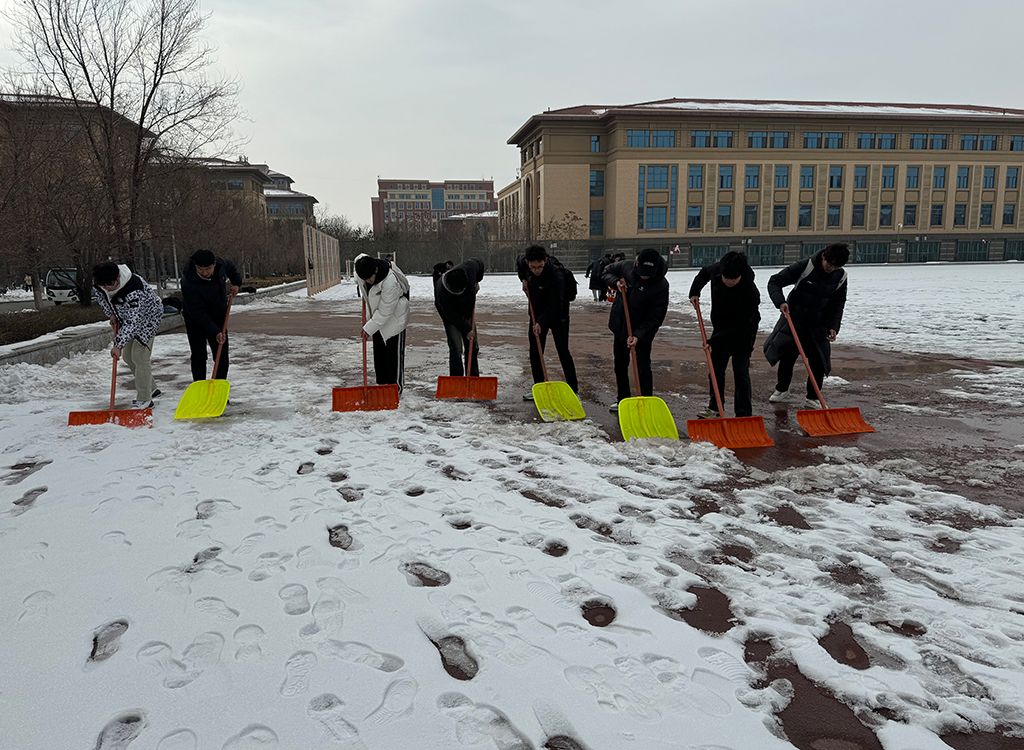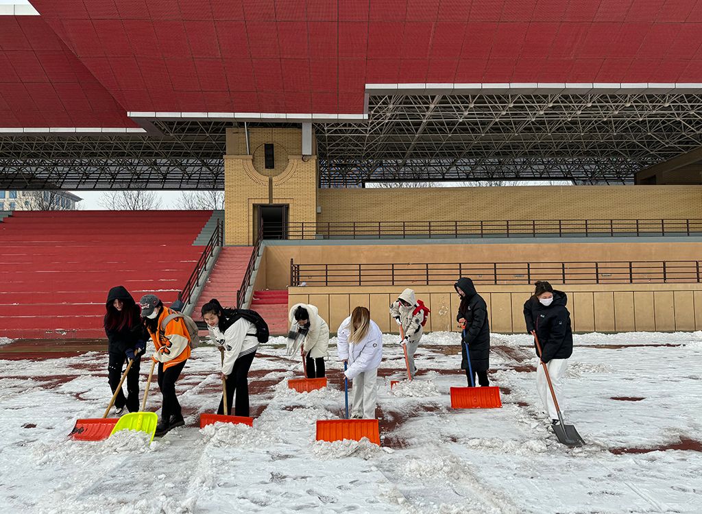 体育学院青年学子积极开展新学期校园体育场地冰雪扫除活动
