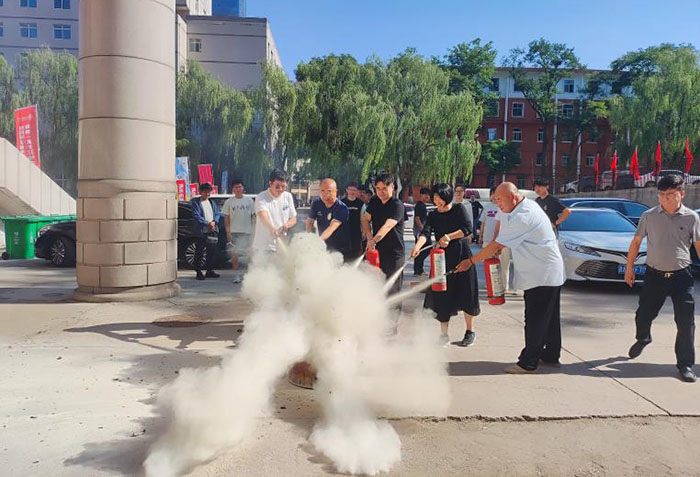 随后,保卫处消防科负责同志为大家讲解消防知识、灭火器的类型和使用方法以及报警操作程序、火灾扑救过程中的安全注意事项,介绍并演示了正确使用干粉灭火器的方法步骤,组织师生们进行实际操作演练,近距离体验、感受干粉灭火器操作。演练过程中,师生们的注意力高度集中,紧张而有序地完成了各项任务。