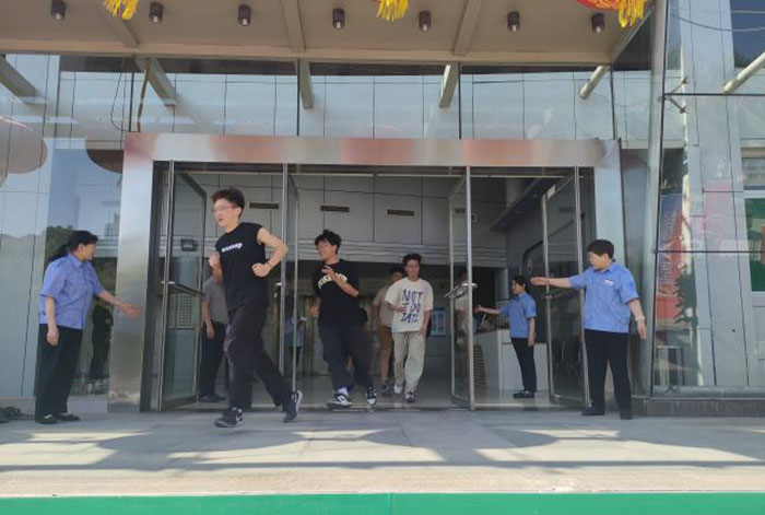 逃生演练预警信号响起,体育馆内全体人员低下头弯下腰,用事先准备好的毛巾捂住口鼻,沉着冷静,听从指挥,按照“安全第一,就近逃生”的疏散原则,迅速跑出场馆,向指定安全区域逃生,场馆安全出口负责人快速到达指定地点进行疏导,确保全员有序撤离到安全地带。在疏散演练过程中,大家更加熟悉应急疏散路线,更快掌握逃生技能,提高应急、自救、互救能力,为生命护航。