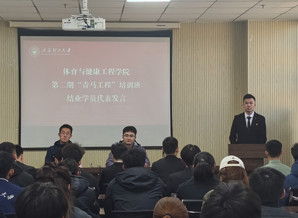 姜昆代表学院团委向顺利结业的学员表示祝贺,并对新学员提出殷切期望。他结合自身参加学校和山西省“青马工程”培训班经历,分享了对“青马工程”的理解:“青马工程不仅是理论学习的课堂,更是践行初心的舞台。”他向全体学员提出三点希望:一要珍惜荣誉,以体育人特有的拼搏精神彰显青年风采;二要坚定理想,将个人成长融入国家发展大局;三要躬身实践,在知行合一中实现人生价值。