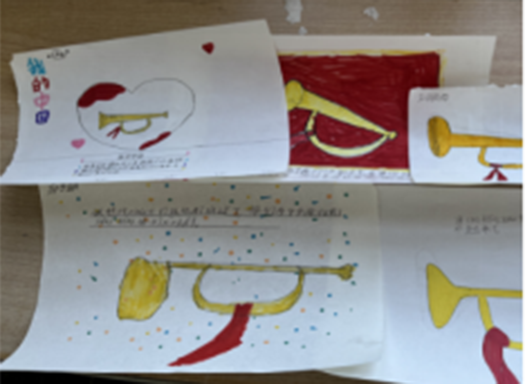 城关第二小学在夯实体育学科常规教学的同时,立足校本特色开发红色思政课程。针对学生课堂认知特点,创新推出"冲锋号精神传承"主题课程,采用模块化教学设计:通过历史纪录片影像解析、军用号角实物图谱观摩,多维度还原烽火岁月中冲锋号的战略价值,深化学生对军号庄严性与精神象征的认知。课程延伸设置"战地之声"创意实践任务,要求学生在课后完成主题绘画《我心中的冲锋号》并附注致敬战士的感言,实现艺术创作与情感教育的跨学科融合,激发学生的爱国情怀与历史共情能力。