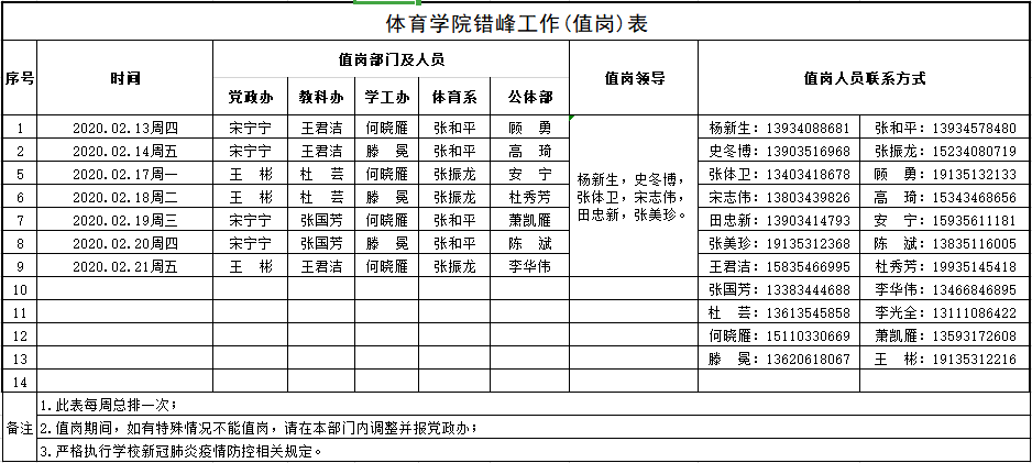 1、强化分散办公,推行错峰(值岗)工作。从2020年2月13日,学院实行错峰(值岗)工作。尽可能采取分散办公、居家办公、网络办公等多种形式开展工作,尽可能通过电话、QQ、微信等方式推进工作,尽可能减少面对面请示、面对面汇报、面对面衔接工作,有效防止交叉感染。