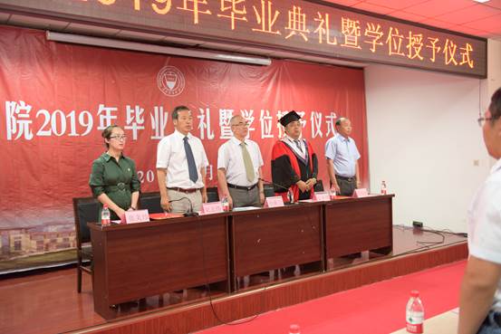 副院长宋志伟副教授宣读2019届优秀毕业生表彰决定,并由学院领导颁发荣誉证书。最后由学院领导为毕业生赠送院徽,并由院长史冬博教授为毕业生颁发毕业证书、拨穗,并予以拍照留念。