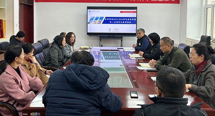 3月11日,学院召开了2023-2024学年春季学期第一次研究生教育例会,贯彻落实学校关于研究生教育工作方案,布署本学期研究生教学重点任务。会议由副院长张美珍主持,院党委书记孙莉、院长史冬博、学院全部研究生导师出席会议。