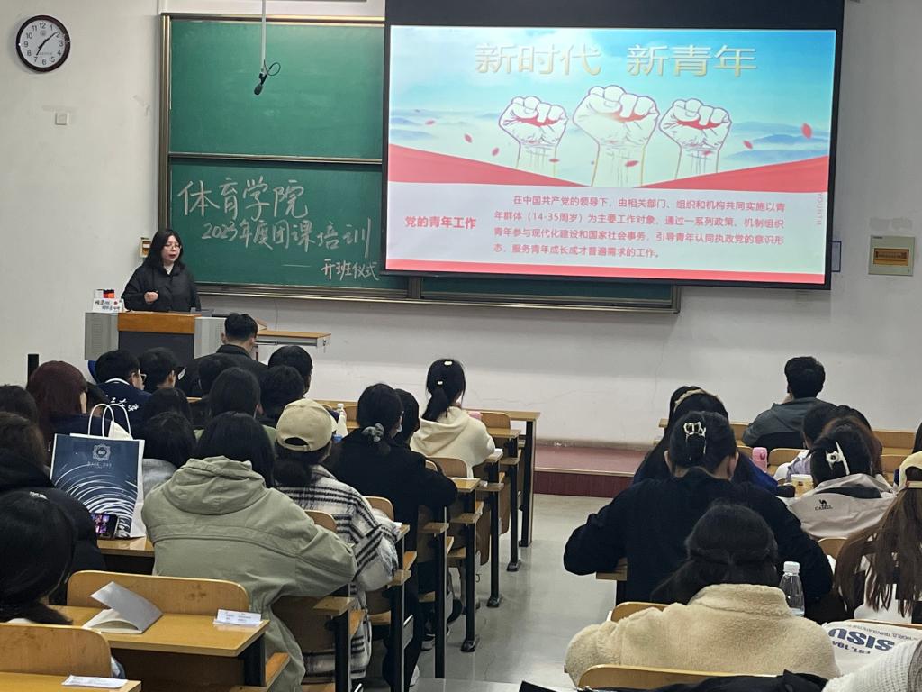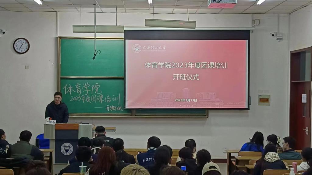 为深入学习贯彻党的二十大精神,全面贯彻落实习近平总书记关于青年和青年工作的一系列重要指示精神,推进体育学院团组织思想引领工作的常态化、制度化开展,不断提高大学生骨干、青年知识分子的思想政治素质、政策理论水平、创新实践能力和组织协调能力,体育学院于3月13日晚,在明向校区行知楼B118教室开展2023年度团课培训开班仪式。体育学院团委副书记姜昆主持开班仪式,100名团员青年参加活动。