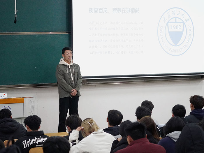 同时在虎峪校区,运动训练系主任张振龙为运动训练2023级新生在体育学概念、体育学专业范围、运动训练学培养目标与规格、学制、学分与学位、课程体系等方面进行专业宣讲,包括通识教育课程组成及学分分配、专业教育课程组成及学分分配、实践课程组成及学分分配、在役运动员认定及培养模式、全国运动训练报考、报告情况、学训矛盾表现、应对及域外经验借鉴等。之后,同样运动训练专业、毕业于北京体育大学的董泽源作为学长走进教室,与同学们进行了交流分享。