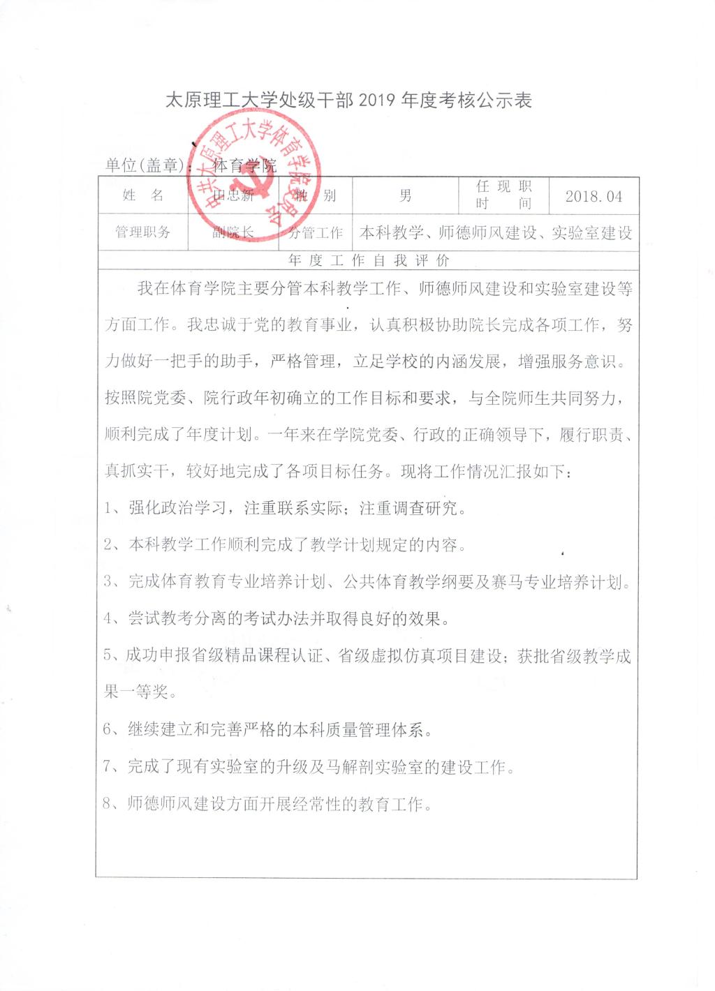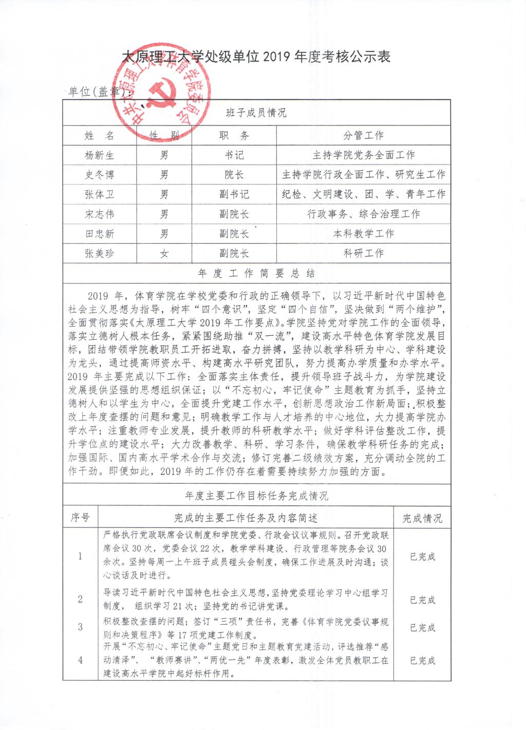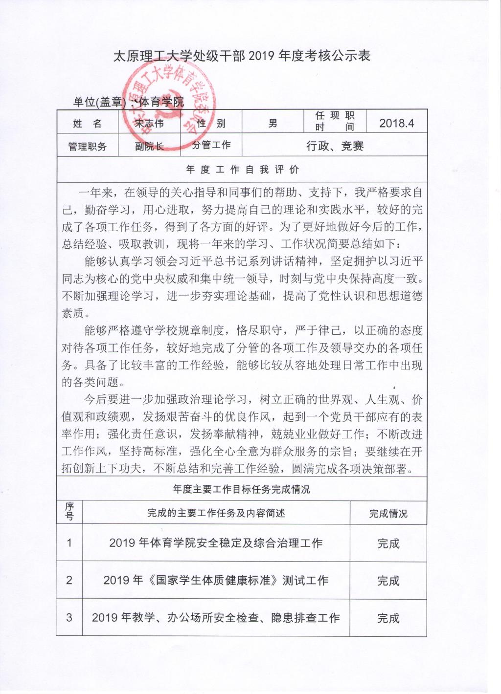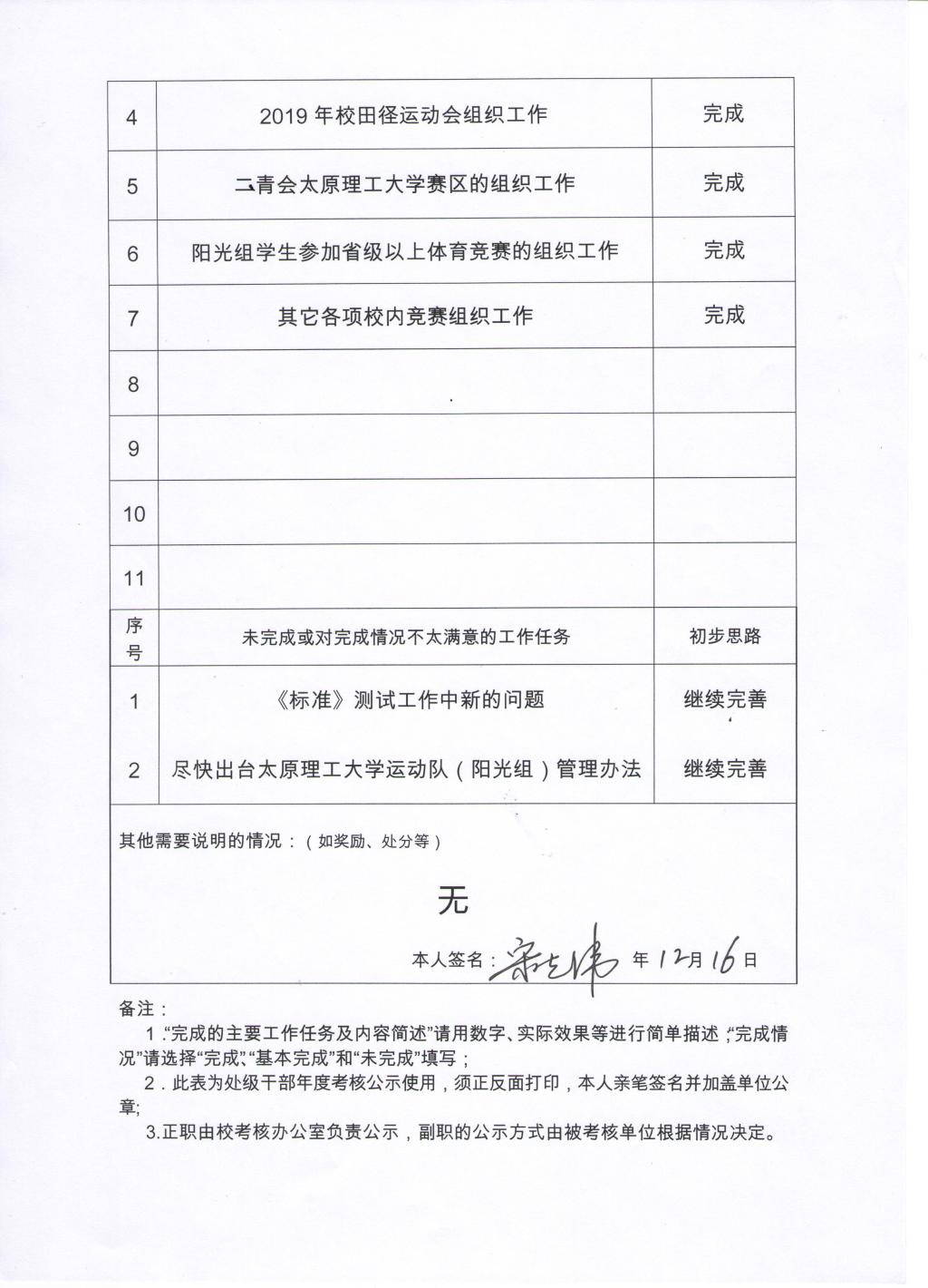 bevitor伟德国际1946体育学院2019年班子、个人考核公示表