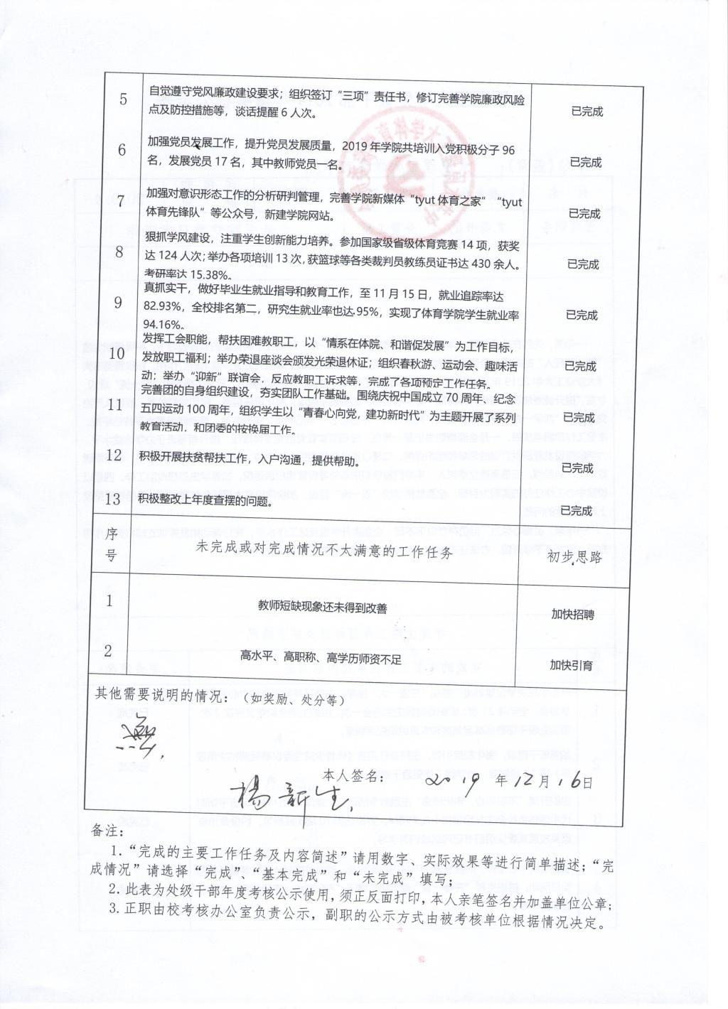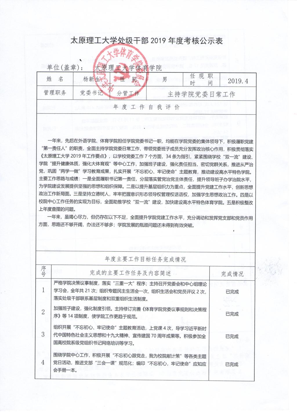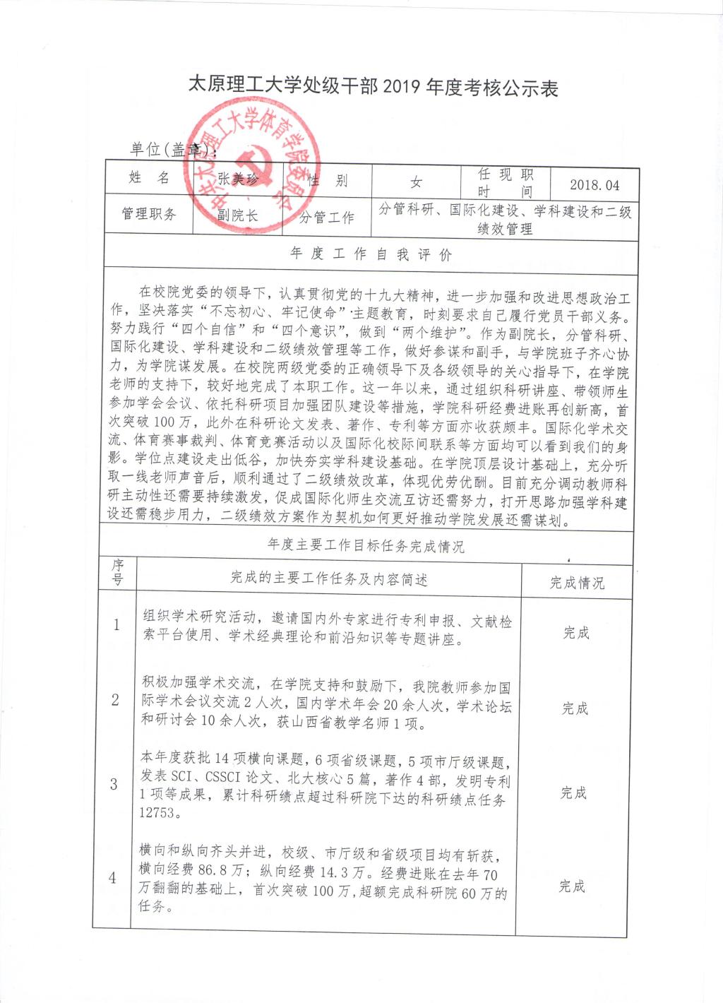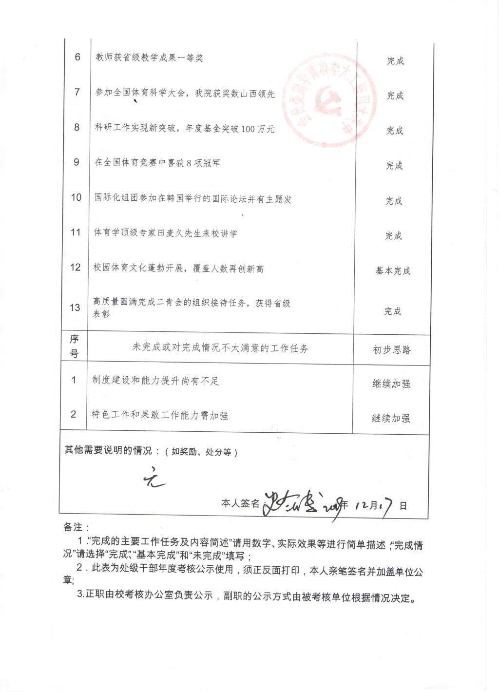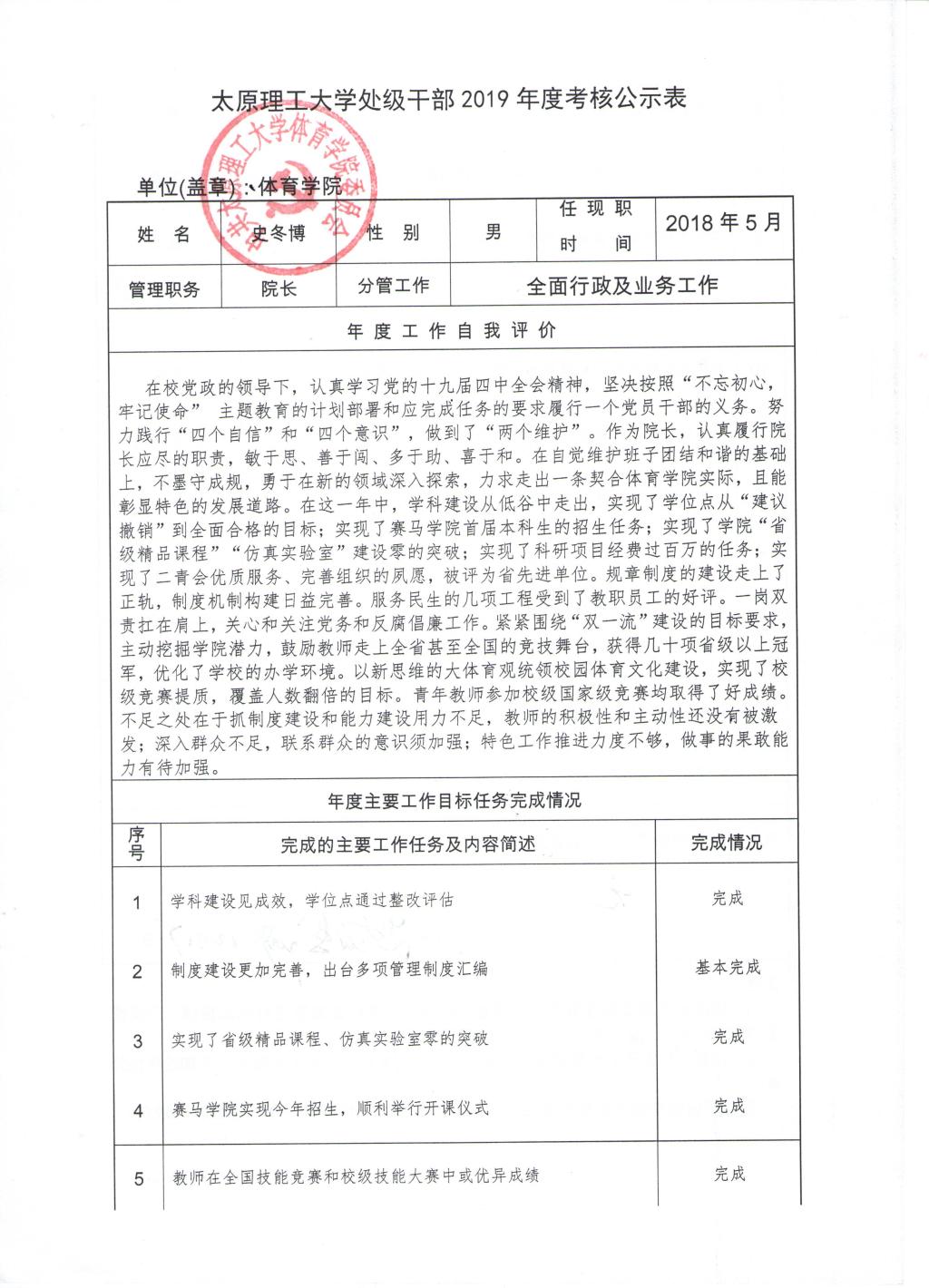 bevitor伟德国际1946体育学院2019年班子、个人考核公示表