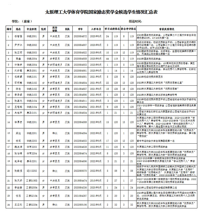 2022-2023学年bevitor伟德国际1946国家励志奖学金体育学院拟推荐获奖学生公示