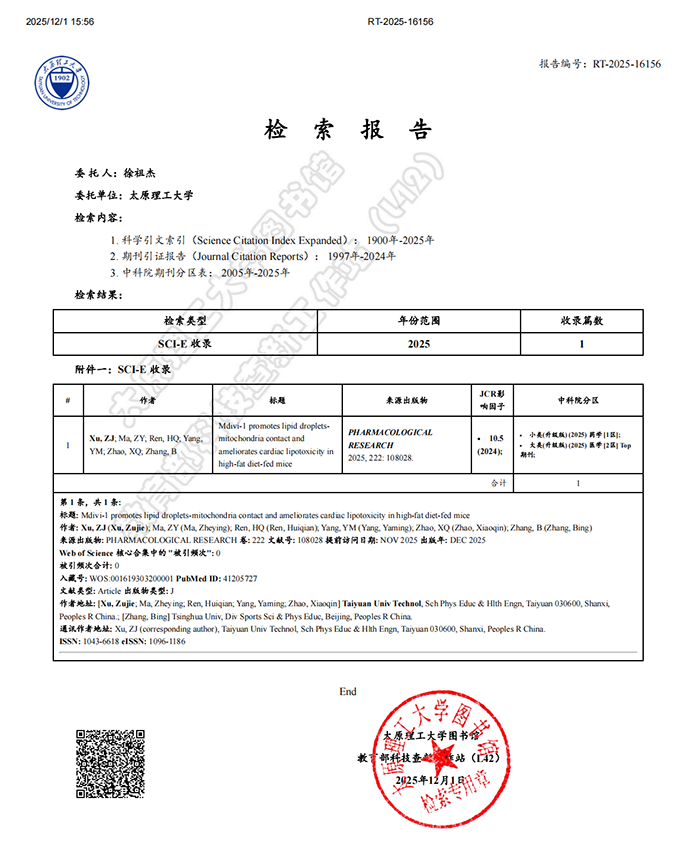 该研究聚焦于肥胖相关心肌病的关键病理机制心肌脂毒性,通过高脂饮食小鼠模型及棕榈酸处理的H9C2细胞实验,证实线粒体分裂抑制剂Mdivi-1可通过上调脂滴表面蛋白Plin2和Plin5表达,促进脂滴-线粒体相互作用,重建脂肪酸从脂滴储存向线粒体氧化的高效转运,恢复心肌脂肪酸氧化能力与ATP生成,减少脂质积累,改善心肌能量代谢及结构和功能损伤。该研究不仅揭示了心肌脂毒性的潜在治疗靶点,更为运动干预代谢性心肌病提供了理论依据和重要参考。