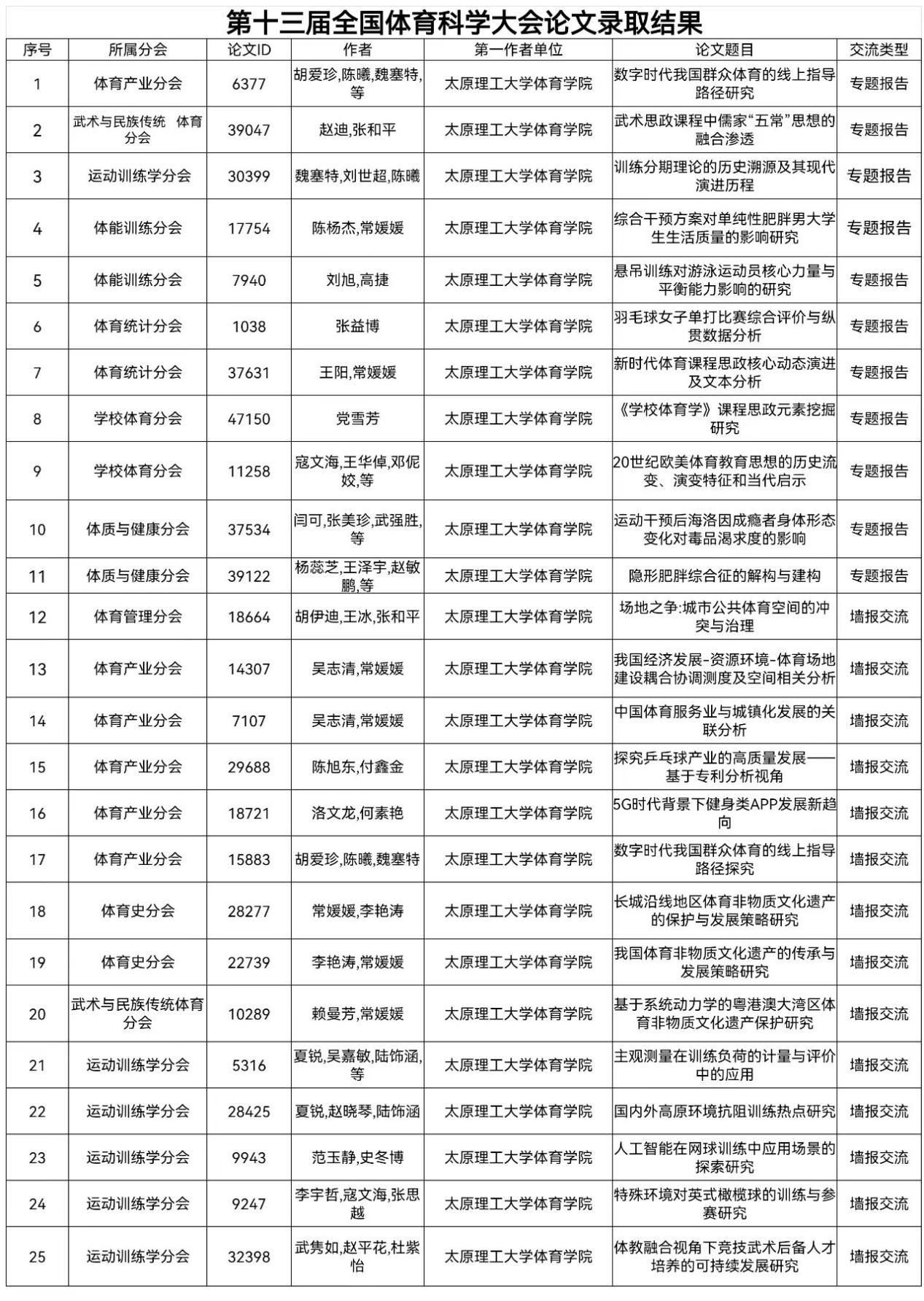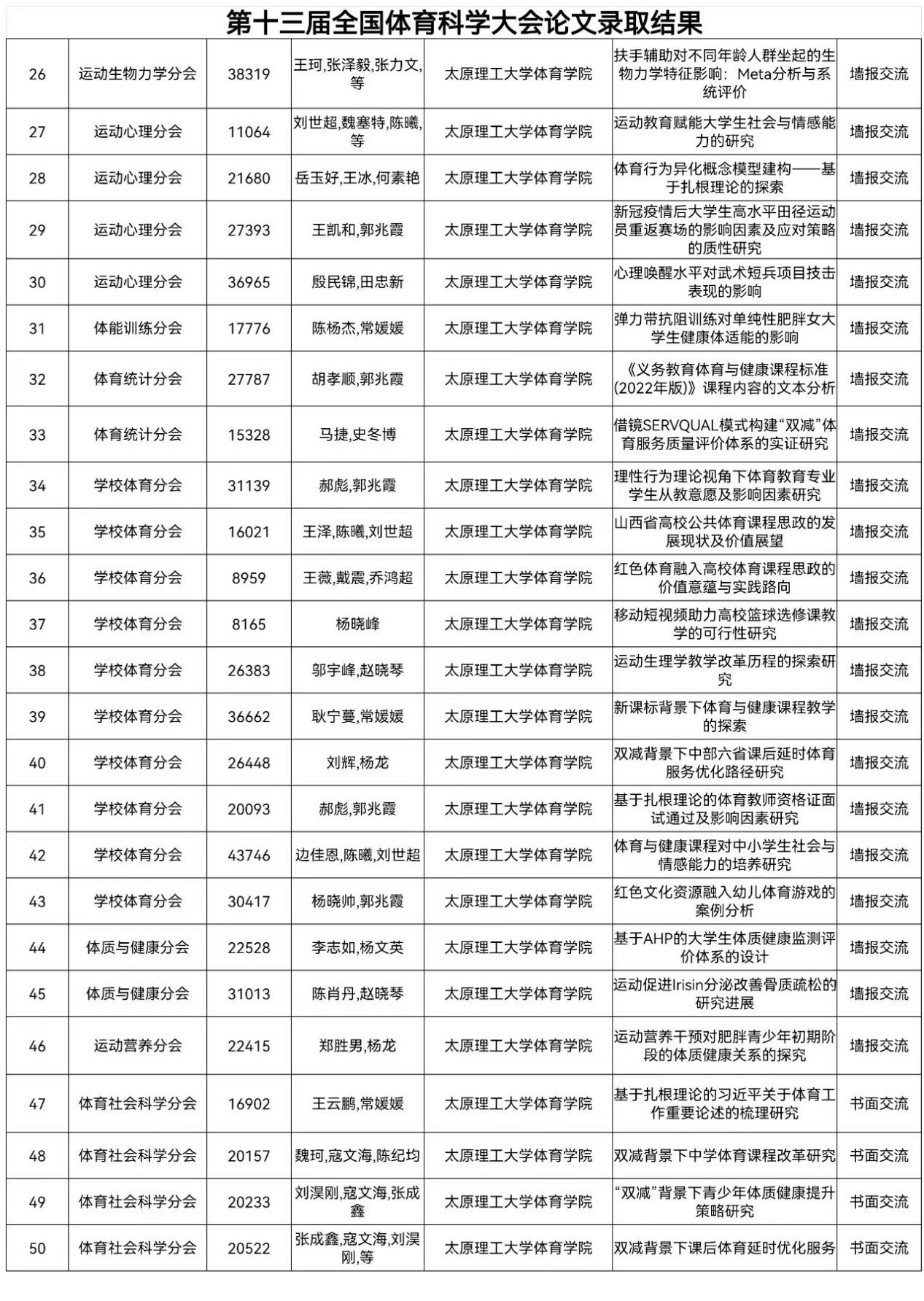 63篇!体育学院第十三届全国体育科学论文报告会录取结果再创佳绩!